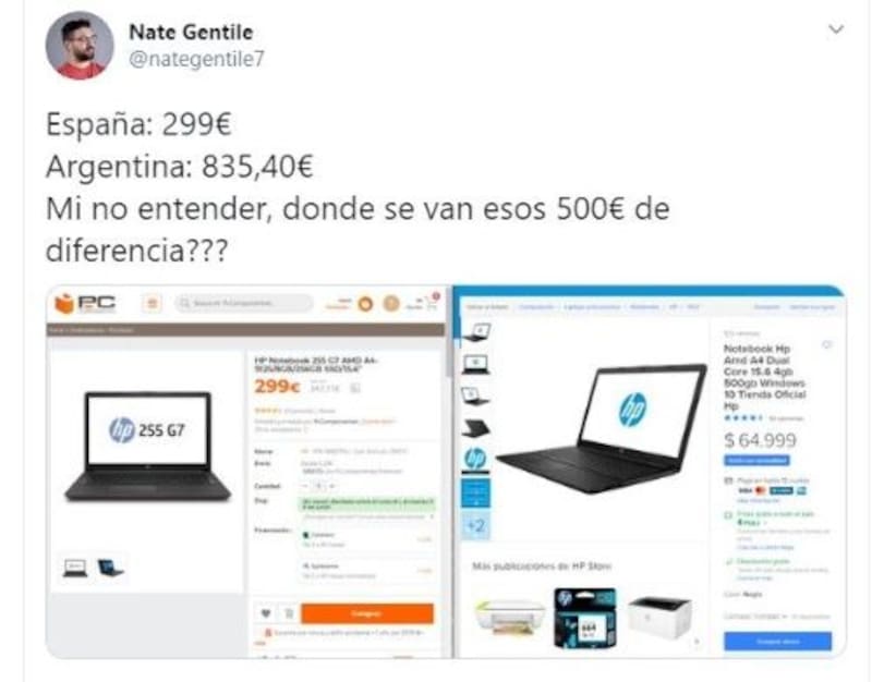 Algunos usuarios también se quejaron en redes sociales de los productos que se ofrecen en diferentes plataformas de ventas online para aprovechar la situación. Es decir, aparecen muchas ofertas de notebooks armadas en China de marcas desconocidas por valores muy por encima del real.