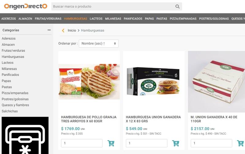 A través de Origen Directo se pueden pedir solamente los productos que están en stock (por lo que el sitio no muestra lo que tiene 0 stock) y los productos son exclusivamente de la categoría alimentos.