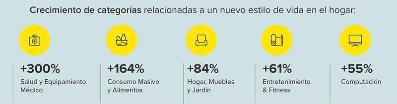 Además, analizaron el crecimiento de cada categoría de ventas. Las dos categorías que más crecieron fueron el equipamiento médico cpn un aumento del 300%, y los alimentos, que aumentaron las ventas en un 164%. Le siguen muebles, entretenimiento y computación.