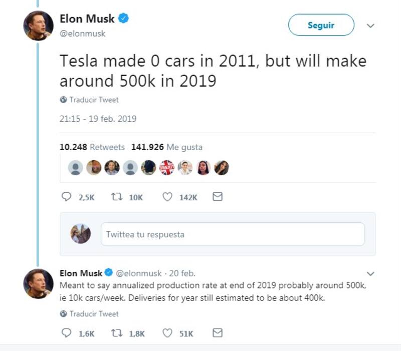 El martes pasado Musk debió nuevamente retractarse en su cuenta de Twitter, luego de postear un mensaje en el que afirmaba que Tesla “produciría alrededor de 500.000 vehículos este año .