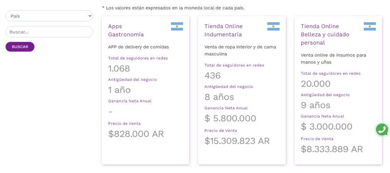 En esta línea, recomienda este formato para aquellos que quieren emprender "y no quieren hacerlo de cero". "Entran a la página web, filtran por ganancias y pueden comprar un negocio con ganancias que ya está en funcionamiento", detalla Bertone. Como se trata de negocios con tiendas e-commerce, las ventas y las métricas son 100% comprobables.