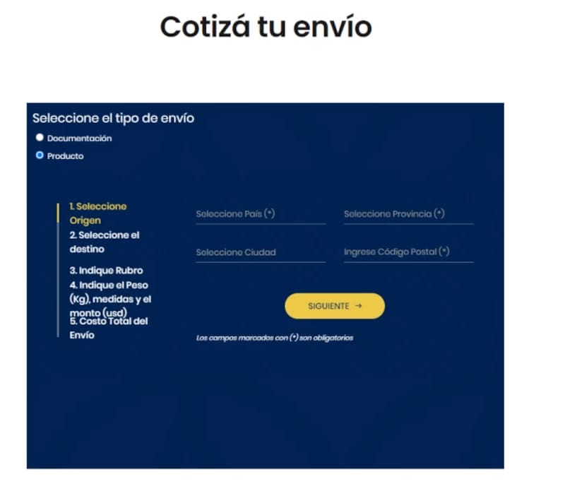 Actualmente, las Pyme pueden exportar casi cualquier tipo de producto: salvo el caso de ciertas restricciones como ser el rubro farmacéutico o productos perecederos. En este sentido, los emprendedores locales pueden ofrecer productos autóctonos hacia mercados internacionales. El servicio cuenta con un sistema de cotización de envío, una suerte de calculadora para calcular los costos de los envíos.