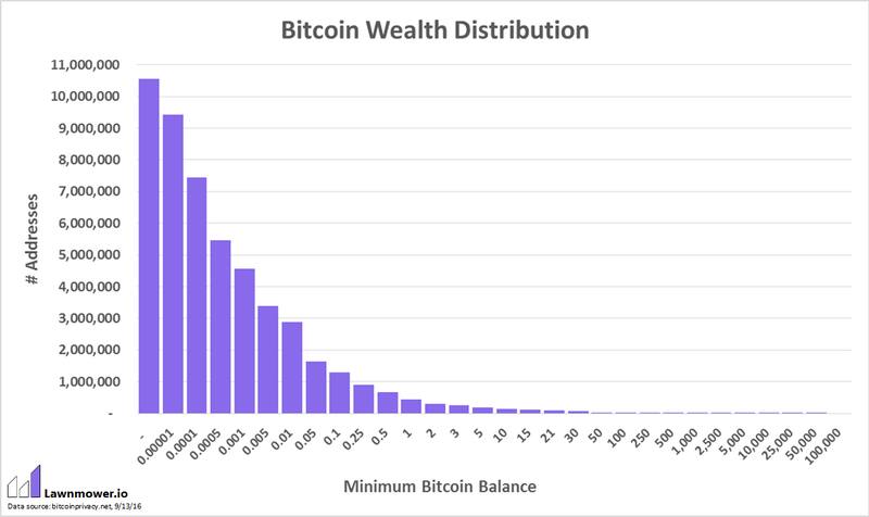 La distribución de Bitcoins según tamaño de cada wallet (billetera virtual)