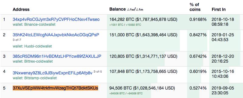 Ahora se presume que la billetera receptora de la transacción de Bitcoin es la primera dirección más rica fuera de un exchange (las "casa de cambio" de criptomonedas). Según el análisis de empresas como Bitinfocharts, esta billetera no está asociada con ninguna empresa relacionada con las criptomonedas.