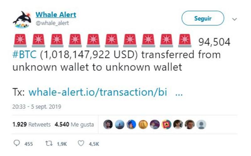 La repercusión de tamaño movimiento se dio, también, en redes sociales. El usuario de Twitter Whale Alert anunció la transacción.