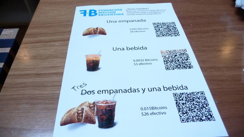 El menú del almuerzo con la posibilidad de para pagar con bitcoins. Foto: E.Apesteguia