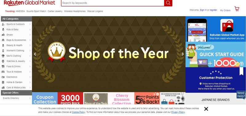 Sin salir de Asia, pero poniendo el foco en otros países, se pueden encontrar también empresas líderes del rubro que no gozan de la publicidad de sus hermanos mayores pero tienen un peso similar. Tal es el caso de Rakuten y su división Global Market. Se trata de una empresa multi negocios, que tiene la división de e-commerce más grande de Japón. Es una de las 10 compañías de internet más grandes del mundo, cotiza en la bolsa tecnológica de Japón, su capitalización de mercado es cercana a los 5.000 millones de dólares. Recientemente estuvo un poco más bajo la luz del reflector por haberse acercado al club de fútbol Barcelona para ser sponsor. Se pueden conseguir todo tipo de productos; desde ropa hasta electrónica pasando por productos para el hogar.