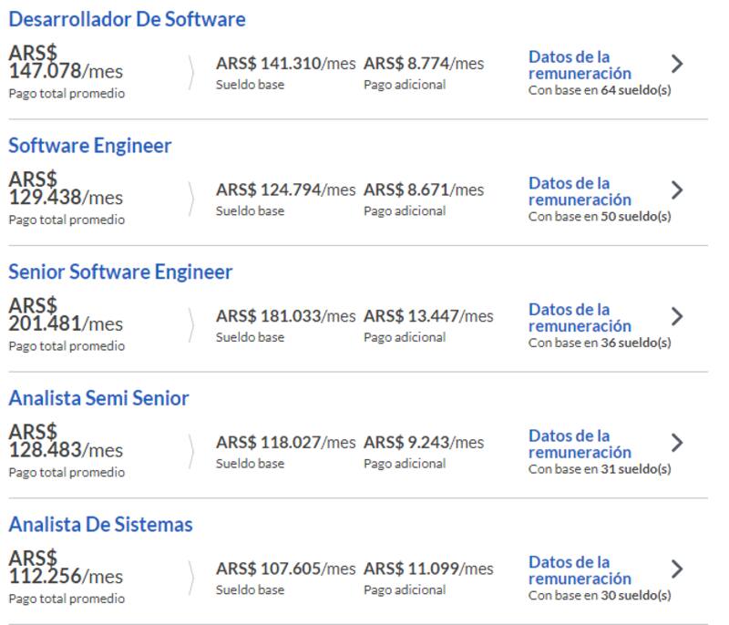 Las búsquedas activas están disponibles en el sitio oficial jobs.mercadolibre.com. En este momento, buscan diseñadores web con experiencia, ingeniero en software especialista en ciencia de datos y un analista de ciencia de datos senior para el sector de prevención de fraude. Uno de los factores de más impacto para los trabajadores del sector son los salarios: un desarrollador que trabaja en Mercado Libre gana alrededor de $140.000 al mes, según el sitio de sueldos Glassdoor. Un ingeniero en software supera los $120.000 al mes mientras que un senior especializado en ingeniería de software alcanza los $200.000 al mes, de acuerdo al mismo sitio.