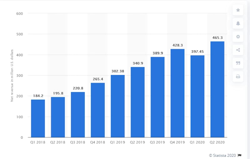 Según un reporte de Statista, MercadoLibre generó en el segundo trimestre de 2020 US$ 465,3 millones en ingresos netos en Brasil en comparación al año anterior en el que ingresaron US$ 340,9 millones. En 2019, casi dos tercios de los ingresos netos de Mercado Libre se generaron en Brasil.