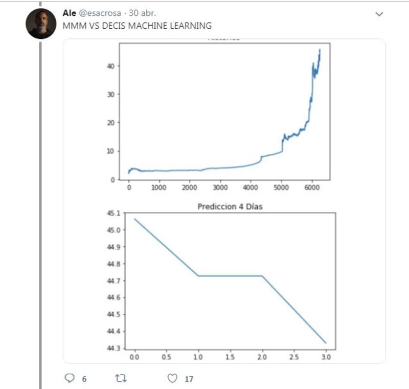 "Toma exclusivamente el valor del dólar y nada mas, literalmente una secuencia de precios. Pensé en modelarlo con más variables, pero la verdad es que ni los economistas que pueden 'razonar' con muchísimas mas variables y sutilezas pueden predecir el proximo valor del dólar con exactitud", desarrolló el experto.