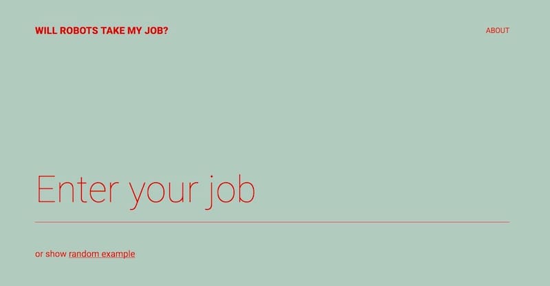 Will robots take my job?, o lo que es lo mismo en español, ¿se quedará un robot con mi trabajo? es el nombre y la dirección web del sitio. Una vez en el sitio, no hace falta más que ingresar la profesión o e rubro y elegir entre las opciones más específicas.