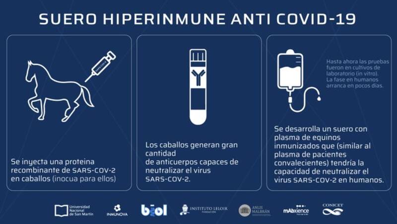 El suero se basa en anticuerpos policlonales de caballos. Los caballos tienen la capacidad de generar gran cantidad de anticuerpos capaces de neutralizar el virus, según información oficial de los científicos de la UNSAM.