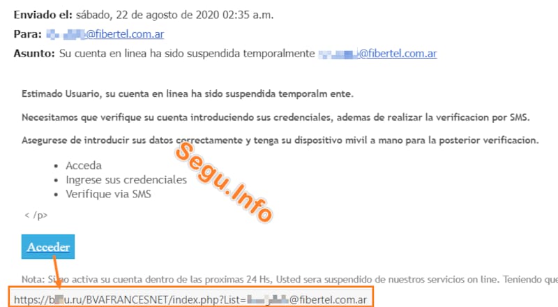 La estafa fue descubierta por el sitio Segu.Info, dedicado a la seguridad informática. La trampa está en que se trata de un sitio vulnerado, que imita al real, por lo que genera una falsa sensación de seguridad. Como se ve en los recuadros, las direcciones a las que aputan los links no se corresponden a las reales. En el cuerpo del correo se puede ver que los atacantes aducen un falso problema y piden "verificar" la cuenta por lo que el usuario debería ingresar sus credenciales que luego son robadas.