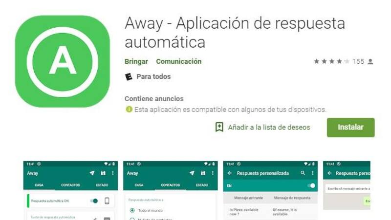 Para poder llevar adelante el deseo, existe una app llamada Away (Aplicación de Respuesta Automática) que se puede descargar desde PlayStore y que es válida para usar con WhatsApp y todas las aplicaciones de mensajería.