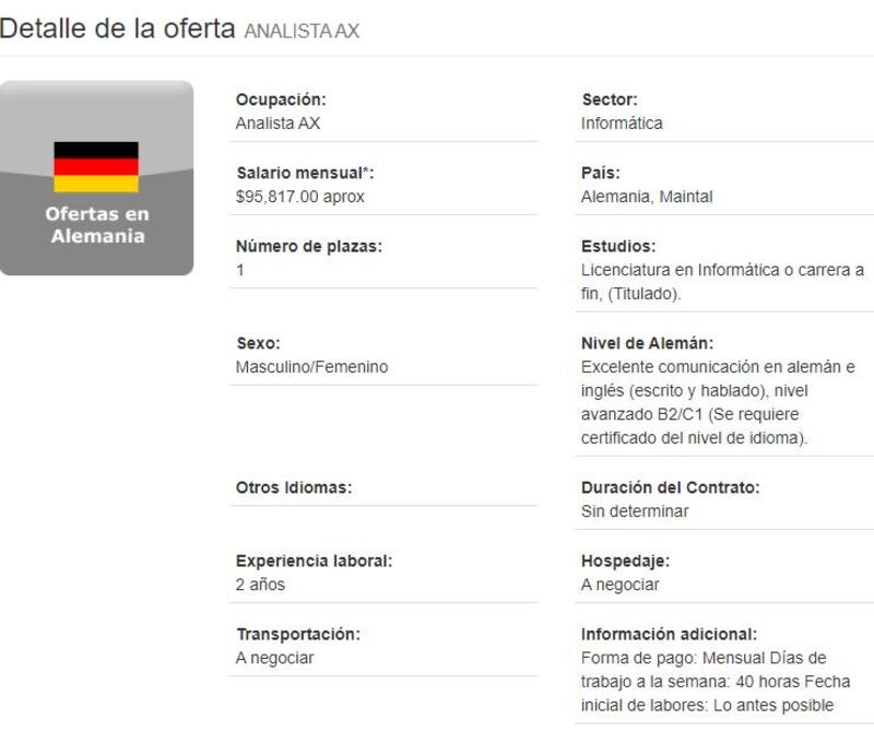 Finalmente, para el puesto de analista AX se requiere licenciatura en informática o afines, 2 años de experiencia y excelente comunicación en alemán e inglés (escrito y hablado), nivel avanzado B2/C1 (se requiere certificado del nivel de idioma).