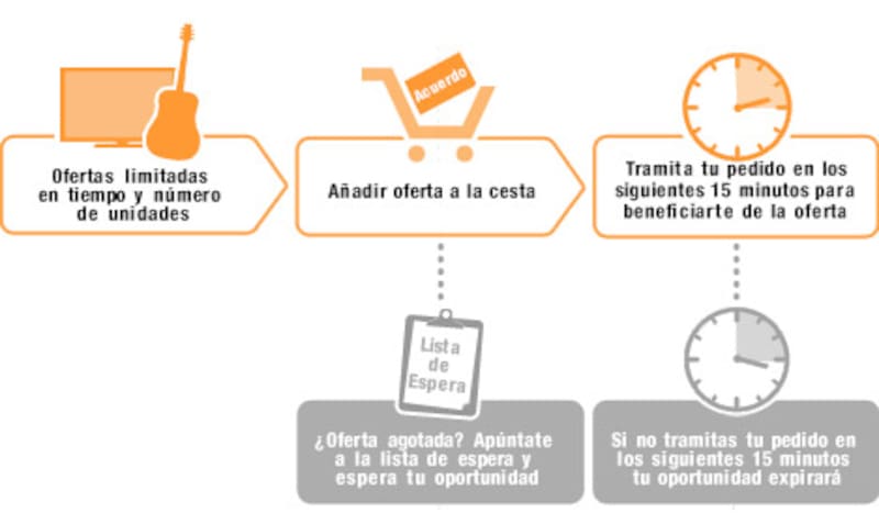 Una vez que se tenga la Oferta flash en la caja de compras, el producto estará disponible en la cuenta del usuario al precio de la Oferta flash durante 15 minutos, y aparecerá como "Precio de Oferta flash".Cabe recordar que existe un plazo máximo de 15 minutos para confirmar la compra, o el descuento promocional expirará y el producto volverá a estar disponible para que otros clientes puedan beneficiarse de la Oferta flash.