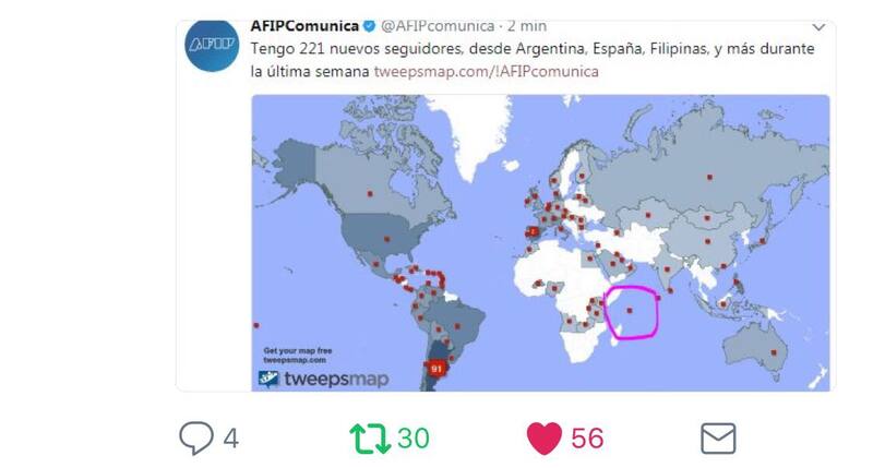 La cuenta de la AFIP tiene seguidores en todo el mundo, incluidos en paraísos fiscales como Seychelles, en África. La cuenta de Twitter de la Administración Federal de Ingresos Públicos compartió un mapa con la ubicación de quienes que comenzaron a seguirla y un usuario de la red social notó el curioso dato.
