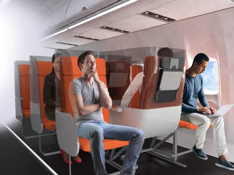 El divisor actúa como una barrera para los gérmenes personales: esta tecnología permitiría a las aerolíneas vender todos los asientos y llenar sus vuelos para no perder económicamente en un mundo pos-pandemia.