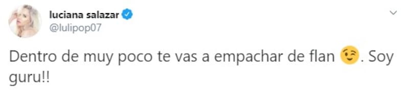 No obstante, la sobrina del exmúsico Ramón Palito Ortega tomó el guante y le respondió con dureza: “dentro de muy poco te vas a empachar de flan. ¡Soy gurú! .
