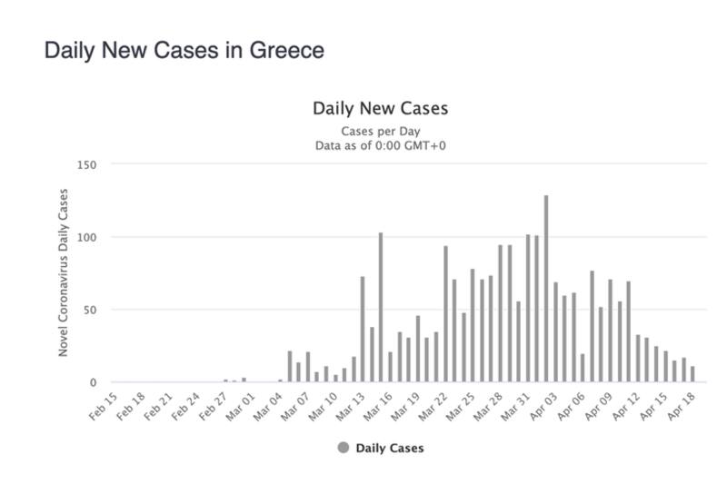 Si bien Grecia en los últimos años fue epicentro de varias criticas y desastres económicos, en particular por la crisis de 2008 de los subprime, actualmente es uno de los países que mejor enfrenta la pandemia. Hoy tiene tan sólo 2.400 casos positivos y 121 muertos.