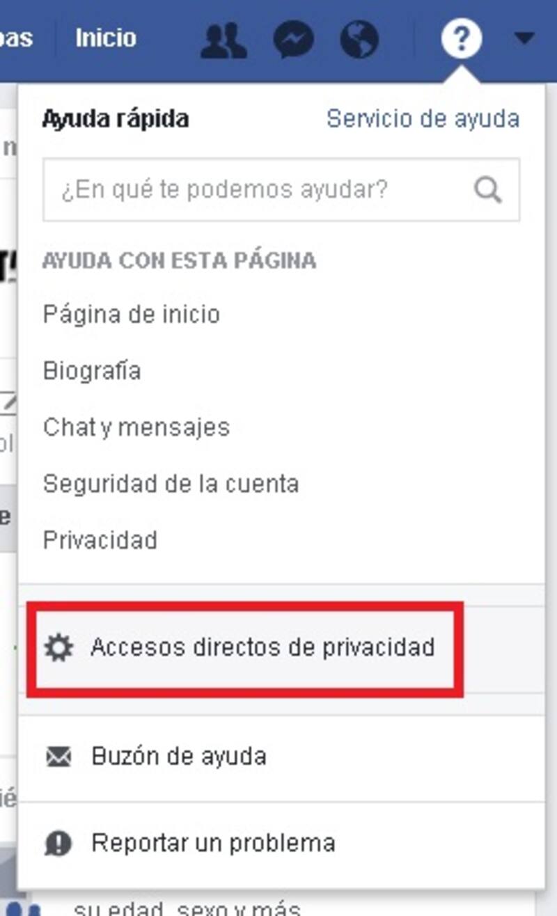 No es sencillo encontrar la herramienta para esconder todas las publicaciones antiguas de una vez. Para acceder, hay que hacer clic sobre el ícono con el signo de pregunta que aparece arriba a la derecho cuando uno está en el feed principal (la página que aparece cuando uno se loguea en la red social). Luego hacer clic en “Accesos directos por privacidad”.