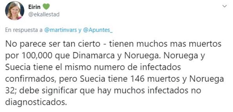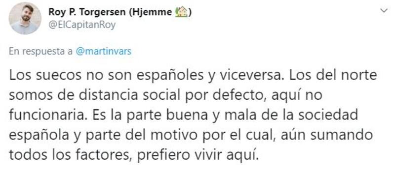 En su cuenta personal de la red social de microblogging (@martinvars) destacó el método sueco incluye aislar a los adultos mayores, teletrabajar, mantener distancia social y dejar colegios abiertos.