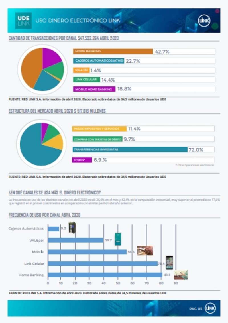 Según un informe elaborado por la Red Link, denominado "Indice UDE Link - Uso dinero electrónico Link correspondiente a abril pasado, la práctica experimentó un fuerte impulso.