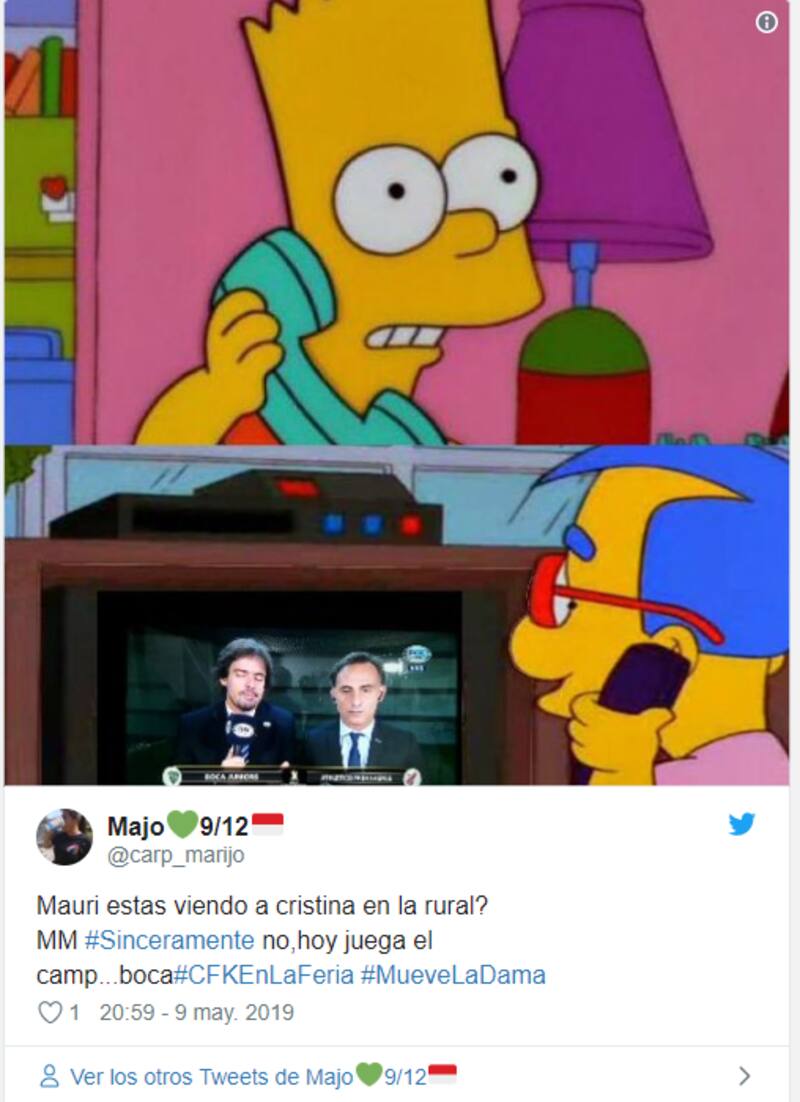 En relación con la charla de ayer, mientras ella hablaba -antes y después-, en las redes sociales tanto los kirchneristas como los anti K publicaron infinidad de memes, mensajes, ironías, halagos y comparaciones con el actual gobierno y las frases del presidente Macri.