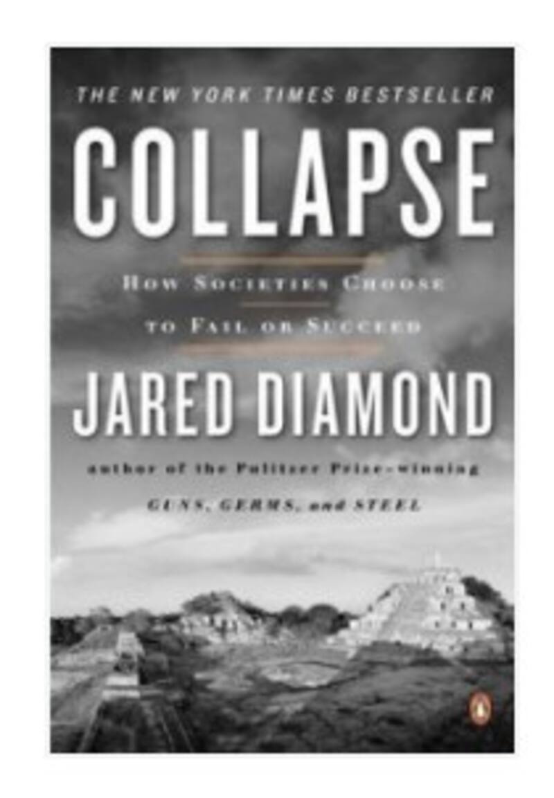 Detalla cómo se desmoronan las grandes sociedades. Analiza el ascenso y declive de las antiguas potencias como los mayas y los vikingos. Además, puntualiza el liderazgo deficiente y la mala gestión ambiental como los principales factores destructivos.
