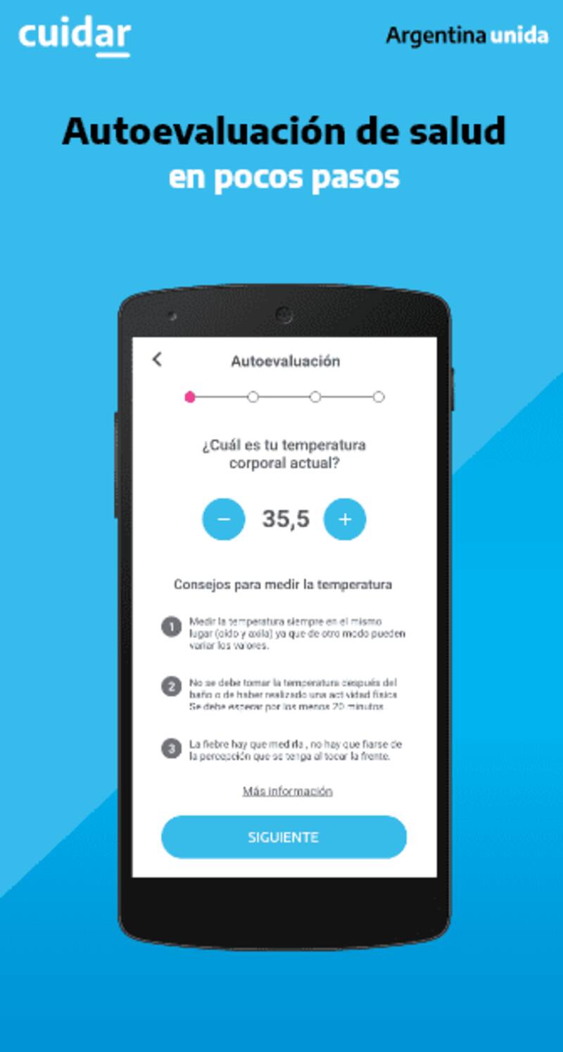 ¿Por qué pide los datos de geolocalización? "Para descentralizar la atención médica y evitar la saturación del sistema sanitario, en casos de sospecha de COVID-19, la app registra la información para dar conocimiento a las autoridades de Salud de la jurisdicción que corresponda y recomienda no circular. Además, brinda al usuario los teléfonos de asistencia médica o psicológica según el área donde se encuentre", explicaron desde el gobierno. De confirmarse que la persona posee el virus mediante un análisis de laboratorio, la aplicación detalla las medidas de cuidado.