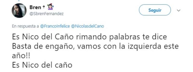 En esta ocasión, sin embargo, fue a partir de un posteo realizado en su cuenta personal de Twitter (@NicolasdelCano) en el que instó a acabar con el “engaño .