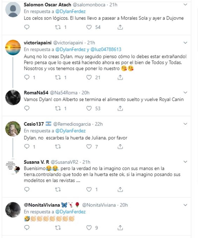"Cuando Alberto gane va a tener mucho trabajo Espero que aún así encuentre algun tiempo libre para pasearme como lo paseo a Dujovne", indicó la cuenta "no oficial" del perro de Fernández (que sí tiene una cuenta propia y oficial en Instagram).