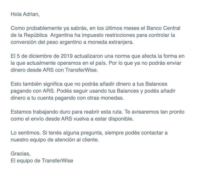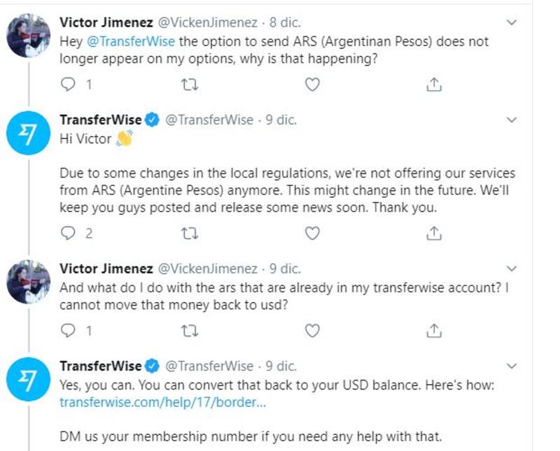 Infotechnology se contacto con la compañía y se expresaron en líneas similares a lo que indicaron en redes sociales: "El Banco Central de la República Argentina (BCRA) ha impuesto recientemente una serie de restricciones para controlar la conversión del peso argentino en monedas extranjeras. El 5 de Diciembre del 2019, se actualizó una regulación que afecta la forma que operamos en el país, por lo que no podemos ofrecer nuestros servicios de envíos de dinero desde Argentina por el momento. Nuestro equipo está trabajando para reabrir esta ruta, pero no tenemos pronósticos de cuándo ocurrirá esto".