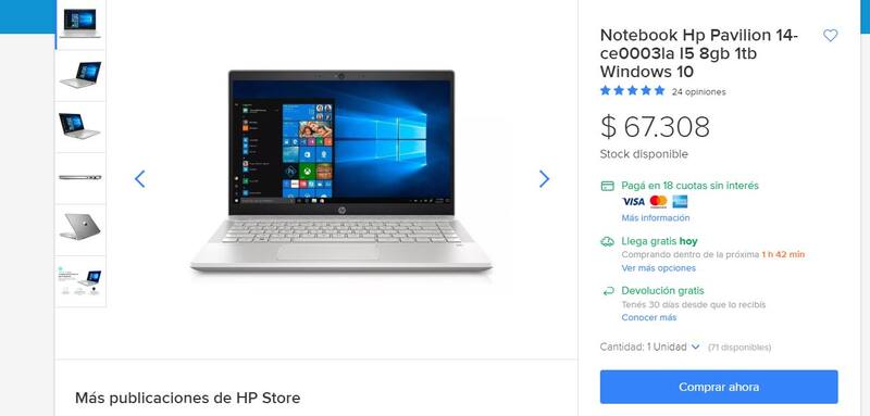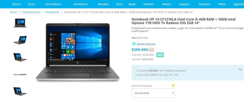 Se puede ver el caso de una notebook comprada en Chile a través de la tienda online Paris.