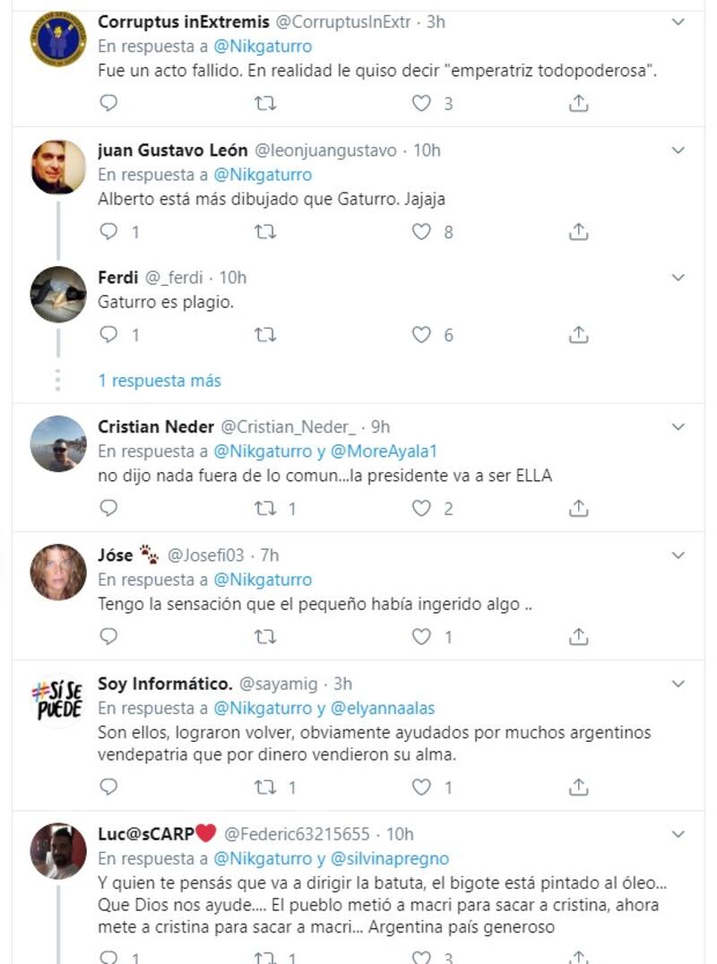 Las respuestas al tuit fueron variadas pero, en general, fueron para insultar al dibujante de la historieta Gaturro o para acordar con él.