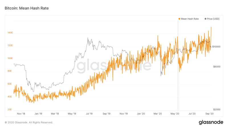 El presentador explicó que esto se correlaciona completamente con la tasa de hash de Bitcoin, la unidad de medición de la potencia de procesamiento de la red de Bitcoin. Cuanto mayor sea la entrada de los mineros de energía informática, mayor será la tasa de hash. A pesar de los temores de la capitulación de los mineros luego de la tercera reducción a la mitad en mayo, la tasa de hash ha estado aumentando y recientemente alcanzó un nuevo máximo histórico.
