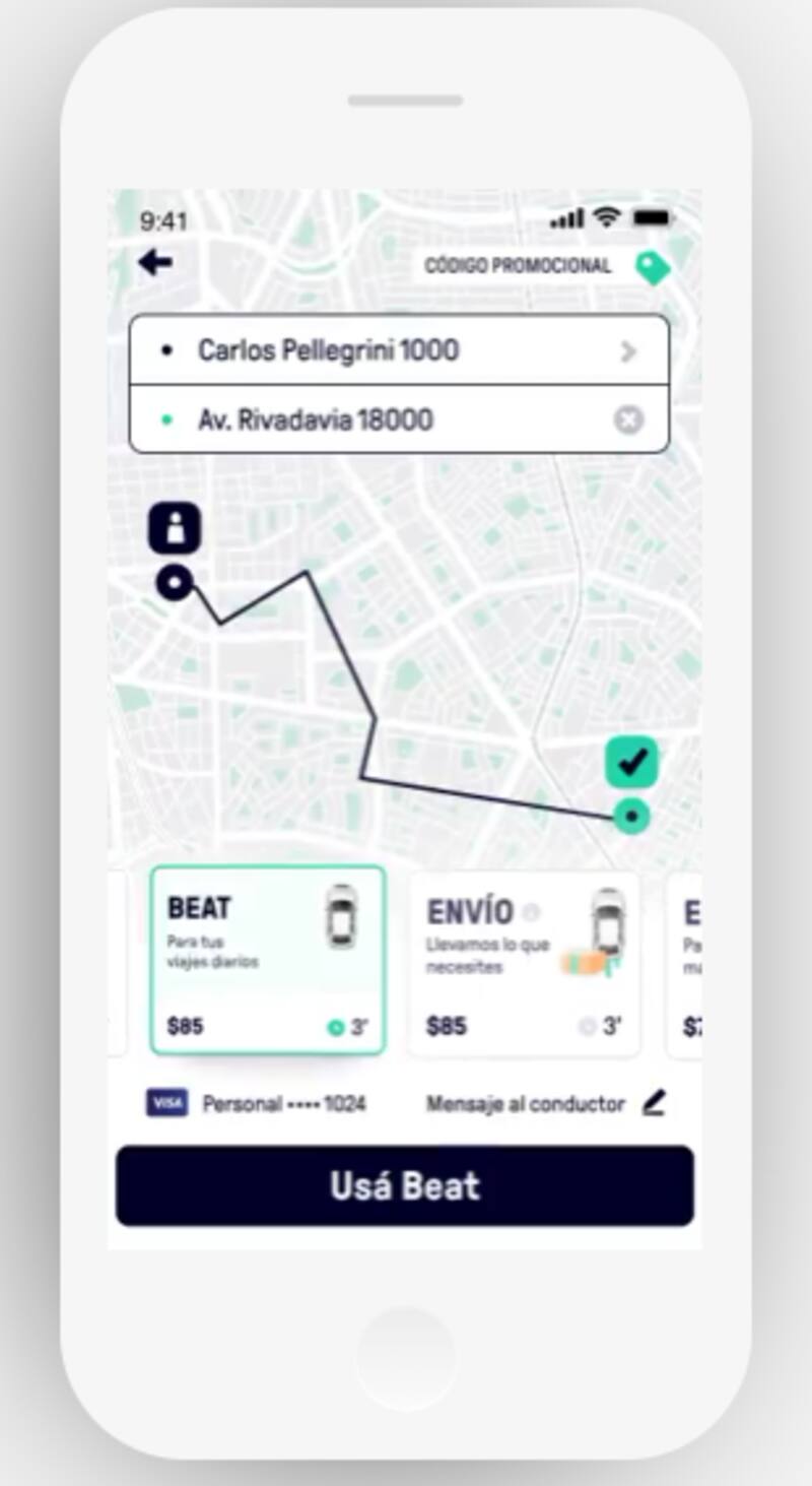 Con respecto a las tarifas, son iguales a cualquier otro viaje a través de Beat. Los valores son los predeterminados en la app, que aplican a todos los conductores por igual. El precio final para el pasajero es fijo y se da a conocer antes de comenzar el viaje, y el usuario puede elegir la forma de pago: efectivo, tarjetas de crédito o débito.