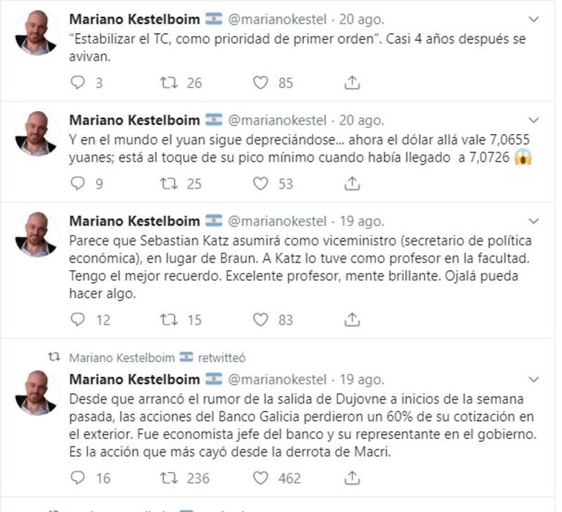 Tuitero habitual, Kestelboim en 2018 "predijó" la crisis que comenzó el año pasado y también lo dio a conocer a través de la red social del pajarito.