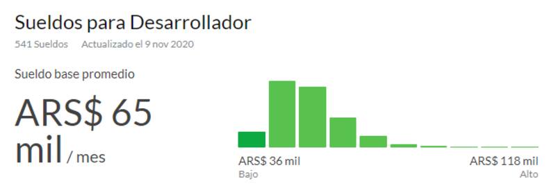 En la Argentina, según Glassdoor, un developer gana en promedio $65.000 mensuales pero puede ganar desde $36.000 hasta más de $110.000.