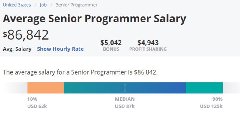 Un programador senior gana en Estados Unidos US$ 86.842 al año, según el sitio de sueldos PayScale. En pesos, serían alrededor $7.315.000. Se calcula que un programador necesita entre cuatro y seis años de experiencia para ser semi senior o senior. Pero todo depende de la empresa.