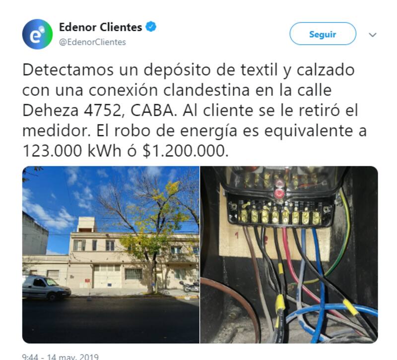 "...se lo intima a que de manera inmediata cese con la publicación de toda información engañosa, falsa y maliciosa, relacionada con el retiro de un medidor de energía eléctrica perteneciente a un inmueble ubicado en la calle Deheza 4752 y que vuestra empresa a publicado en su cuenta oficial de Twitter: “@Edenorclientes , se puede leer en la carta documento.