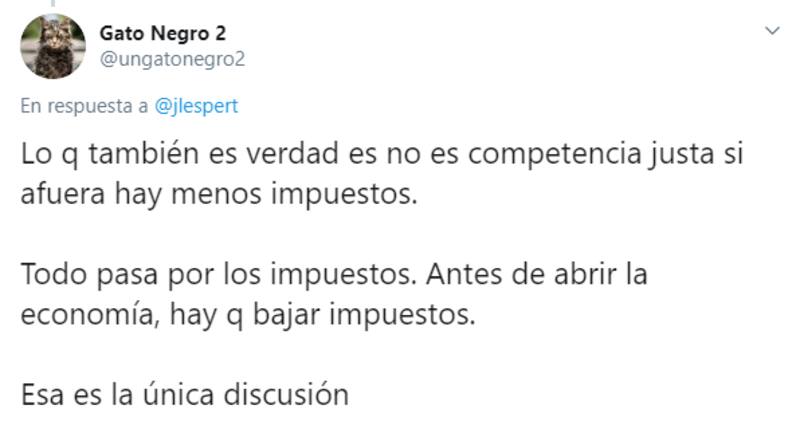 En una crítica explícita a la cúpula de UIA, el economista lamentó que los empresarios no se hayan mostrado a favor de “abrir la economía a la competencia importada para que la gente pague todo más barato y de mejor calidad . “Ladris de cuarta. No cambian más , deslizó.