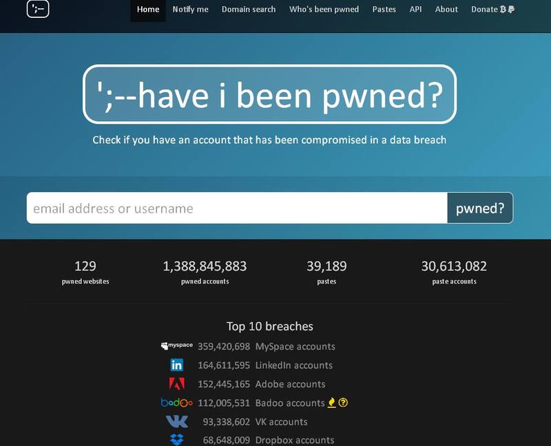 El sitio creado por Hunt, “Have I been Pwned? , es “un servicio gratuito para cualquiera que quisiera comprobar rápidamente si alguna de sus cuentas fue comprometida por una filtración de datos", explica. 139 sitios, al día de hoy, han sido afectados, y el más serio es MySpace, ya que fueron afectados casi 400 millones de cuentas, de acuerdo a lo que indica esta página web.