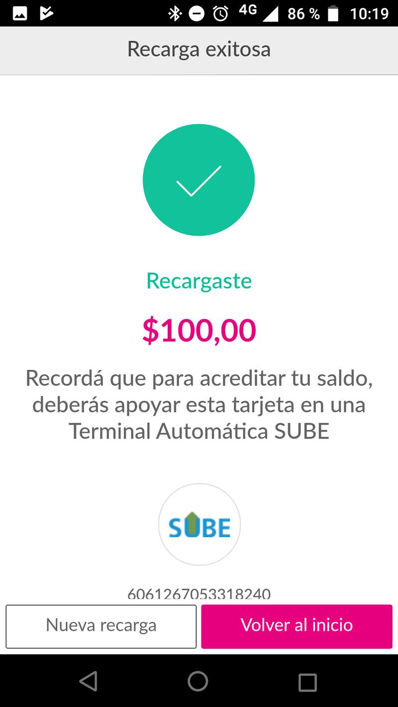 De acuerdo a la “letra chica , la promoción es exclusiva para las tarjetas de débito y el monto máximo del reintegro es de $100. Si el usuario carga menos de eso, le reintegrarán el importe que recargó (por ejemplo, $50). Un detalle adicional a tener en cuenta: el reintegro se acreditará “dentro de los 28 días hábiles de terminada la promoción en su cuenta virtual Todo Pago . Luego, ese importe podrá usarse desde allí o ser pasado a la cuenta bancaria hasta el 31 de octubre de 2019.