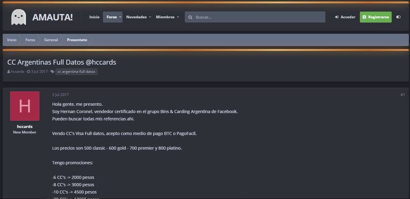Ejemplo de un foro latinoamericano de "carders"