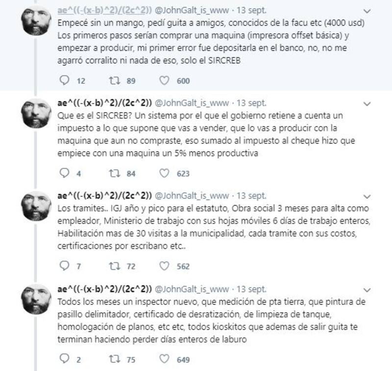 Recientemente, un hilo en Twitter generó una gran cantidad de reacciones entre los usuarios de esa red social. Se trató de una seguidilla de tuits y mensajes que apuntaban a contar -en primera persona- cómo es realmente el proceso de emprender en el país. El usuario que se encargo de revelar el detrás de escena adució haber tenido un negocio relacionado con el rubro gráfico, donde se enfrentó a diversos problemas que van desde lo tributario hasta lo operativo.