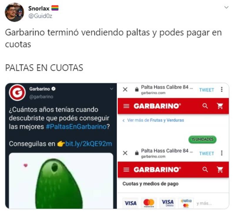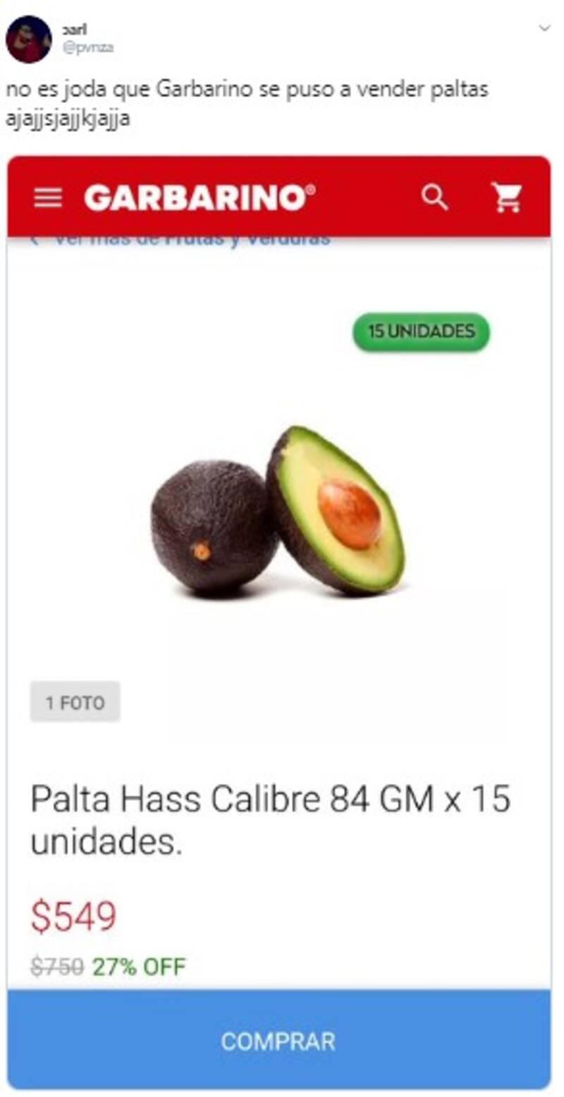 La firma de retail Garbarino decidió empezar a comercializar -de forma inesperada- frutas y verduras. A partir de eso, una publicación en la cual anunciaba la venta de palta se hizo rápidamente viral en las plataformas y redes –sobre todo en Twitter- y a partir de las burlas de algunos usuarios, desde la empresa salieron a responder algunos de los cuestionamientos a través de las redes sociales.
