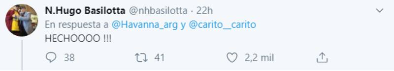 Sin embargo, Basilotta, bien entrenado en el manejo de las redes fue mucho más rápido y decidió comentar la publicación de Havanna.