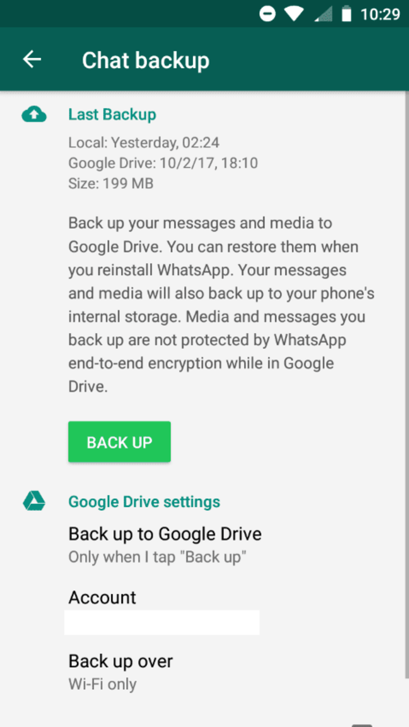 Si bien es fácil actualizar la copia de seguridad en Google Drive, lo que ha preocupado a muchos es la revelación de que los datos de WhatsApp almacenados en Google Drive no están encriptados de extremo a extremo, lo que los hace vulnerables al ataque de los hackers. Cualquiera que tenga acceso a su cuenta de Google, puede acceder fácilmente a sus datos personales de WhatsApp almacenados en el servidor de la nube.