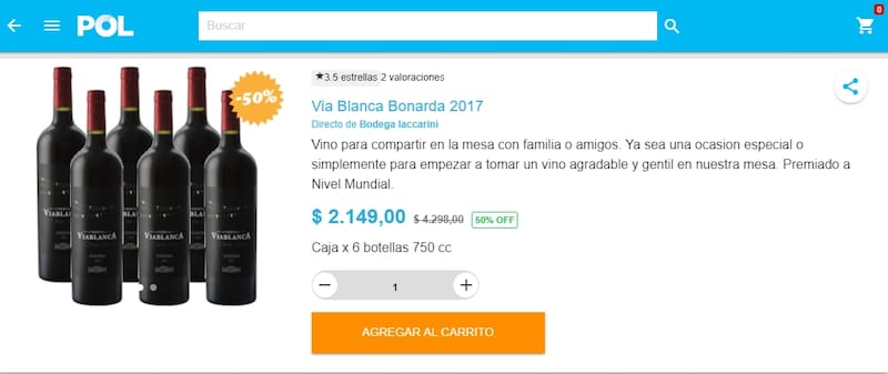 Por ejemplo, el sitio Pol ofrecerá descuentos de hasta 50% en la caja de 6 vinos de Blanca Bonarda 2017, por un valor de $ 2.149.